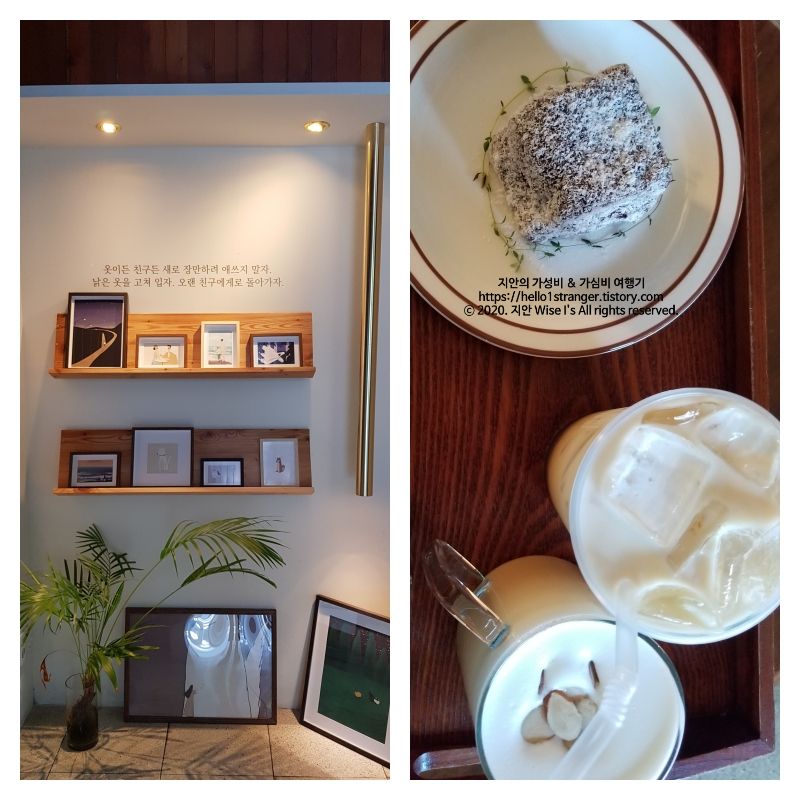 "신기카페"보다 윗쪽으로 50여미터정도? 알고보니 조금만 더 올라가면 "신기숲"이 있었다. 송남사라는 절 바로 위에 위치해 있는데 절에 심겨진 나무들이 풍경이 되고 카페 주위에 자라는 나무들이 요람이 되는 듯 카페를 감싸고 있었다. 그렇게 세상 어느 한구석에 오롯이 서 있는 듯한 분위기와 달리 막상 카페에 들어서면 카페 여기저기 가득한 사람들과 그로 인한 소음에 조금 놀라게 될 수도 있다. 적어도 나는 그랬다. 방음 처리를 거의 안 한 것 같았고 덩달아 소리도 웅웅 울리는 듯 하여 아쉬웠다. 풍경에 어울리는 조용한 음악이 흘러나온다면 좋았을텐데, 하는 생각이 드는 건 어쩔 수가 없다.